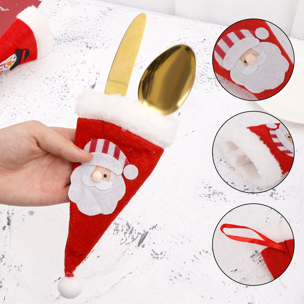Christmas Cutlery Holder Set β Mini Santa Hat Tableware Bags (1β10 pcs)