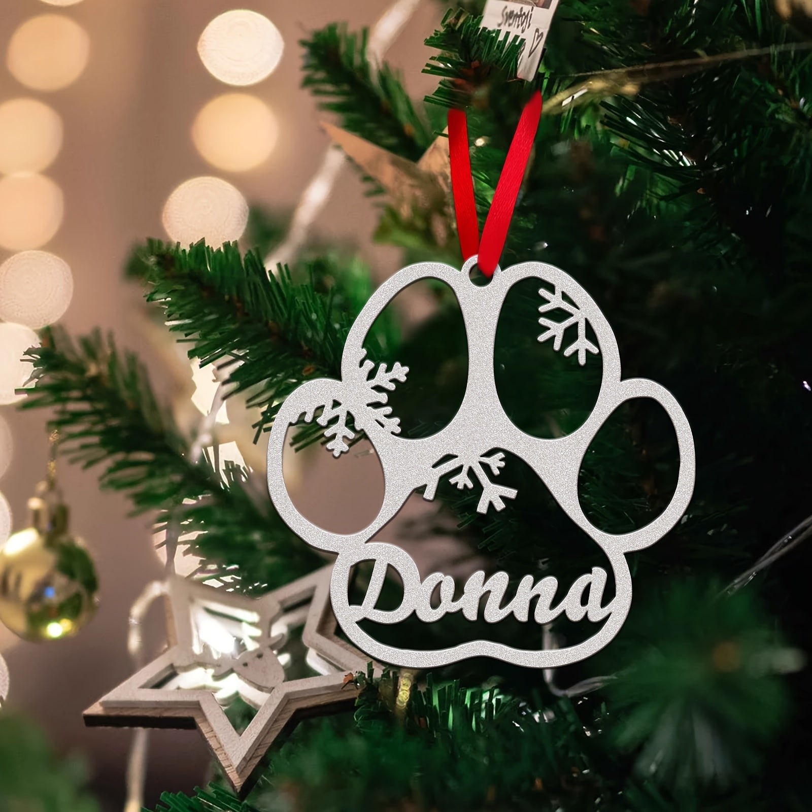 Personalized Christmas Ornament – Snowflake & Paw Print Wooden Keepsake