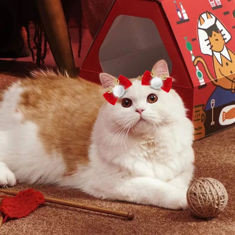 2/6PCS Cute Winter Dog Bows with Metal Clip Antlers Red Velvet Bow Dog Hairpins Handmade Cat Puppy Bow for Christmas Accesso