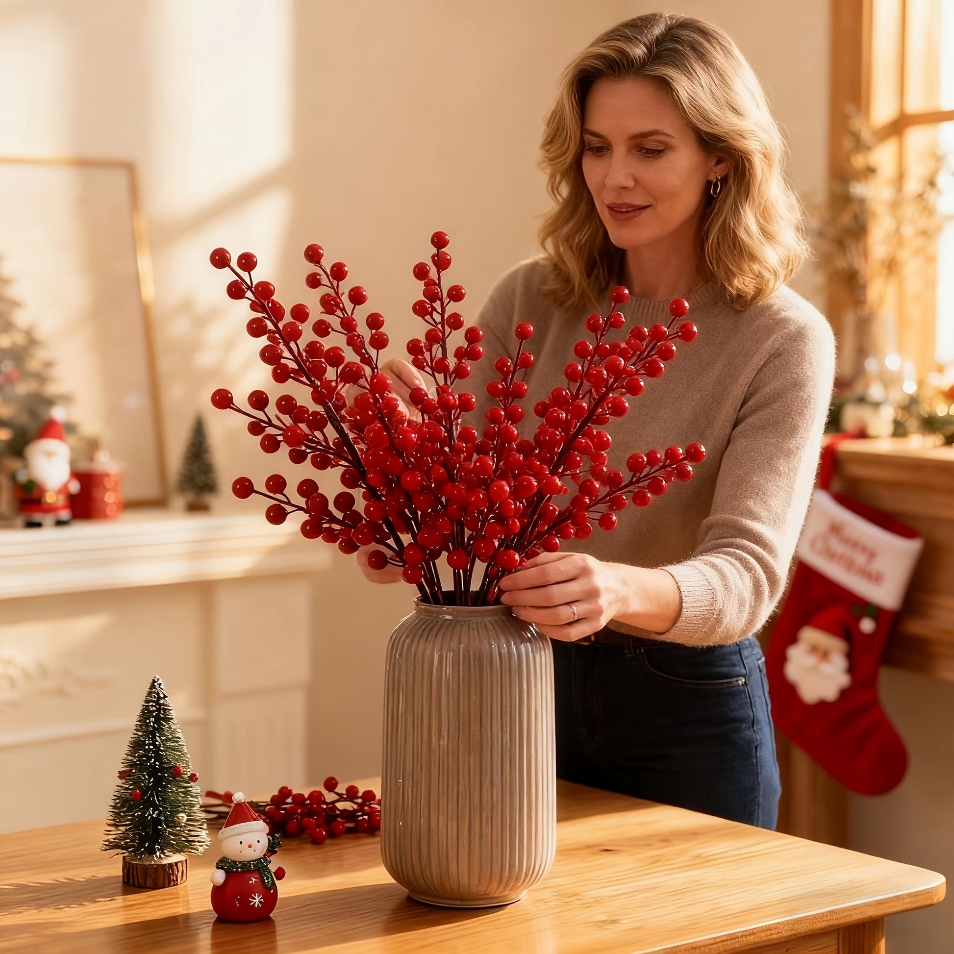 20pcs Artificial Red Berries Set/8-Inch Christmas Greenery/Red Berry Branches/Autumn Floral Arrangements/Holiday Maple Leaf Wreaths for Home Decor/Suitable for Thanksgiving, Halloween, Christmas Craft Wreaths