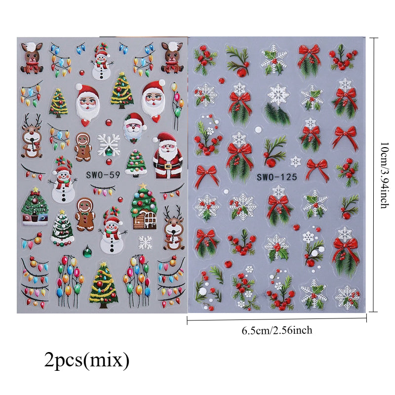 2pcs Self-Adhesive 5D Embossed Christmas Nail Stickers - Red & Golden Holly Berry Snowflake 3D Decals, DIY Winter Nail Art with Sliders for Press-On Nails, Glossy (No Glue) - Plastic Holiday Manicure for Parties & Gifts