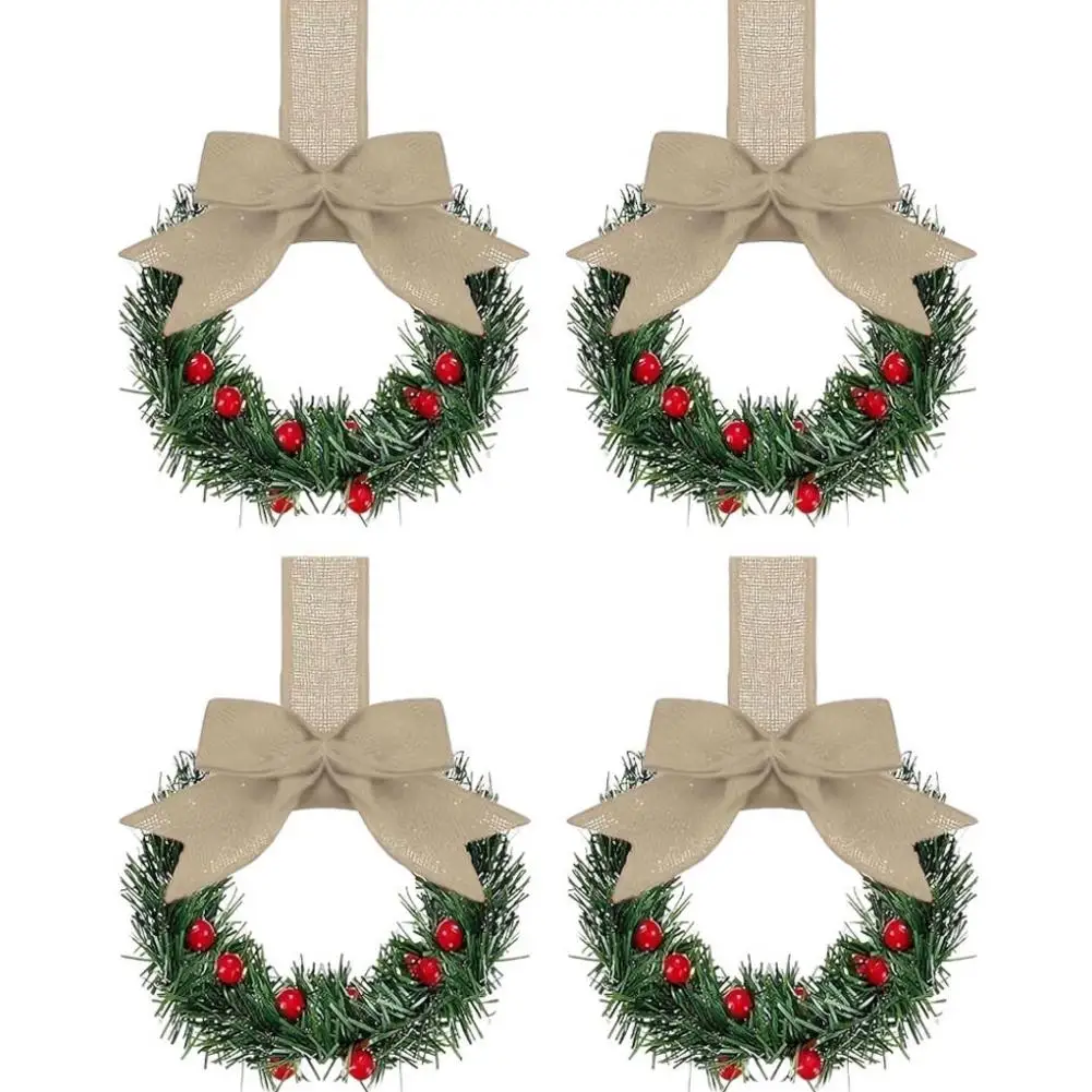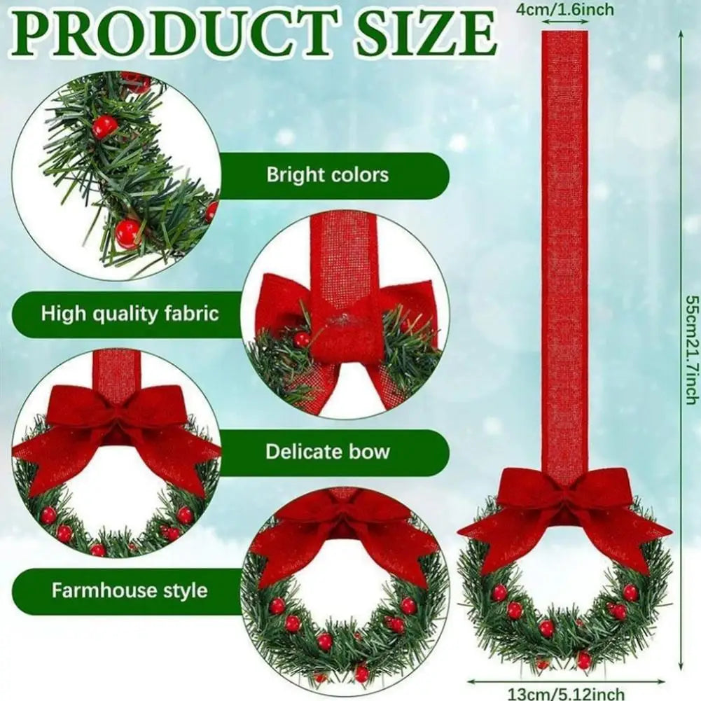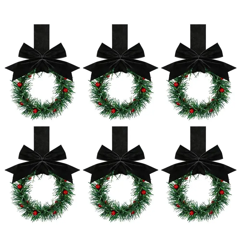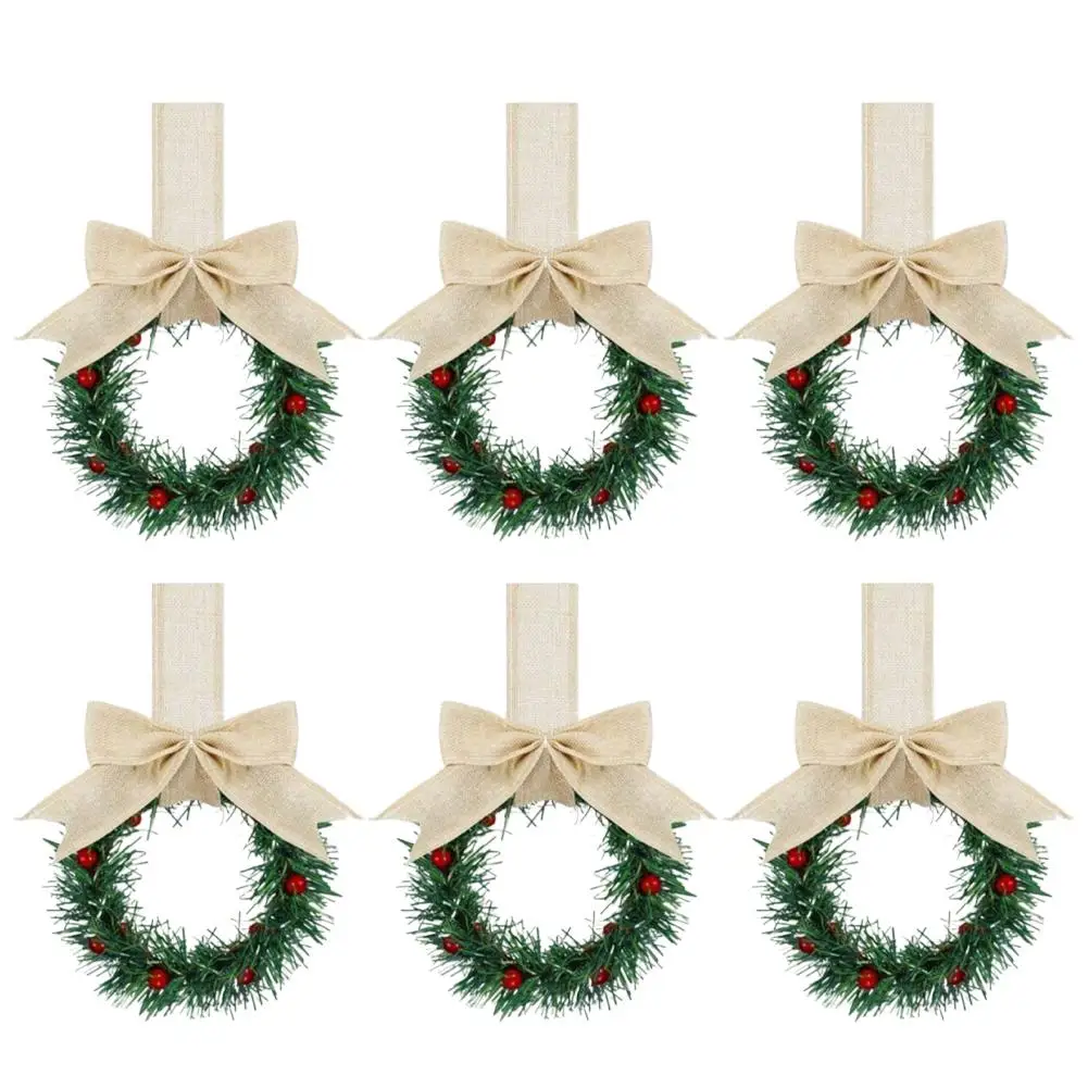 6Pcs Christmas Kitchen Wreath Decoration with Ribbon Bow Christmas Cupboard Wreath Decoration Christmas Home Party Decoration