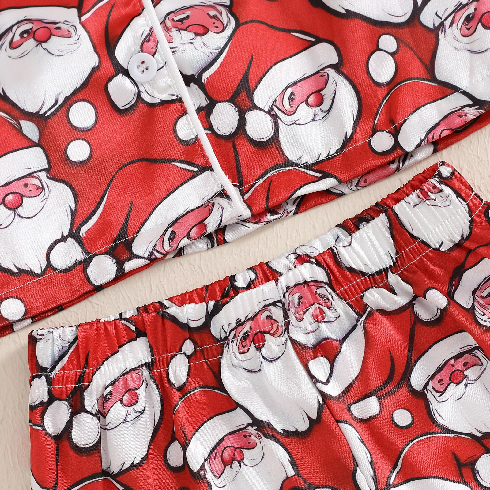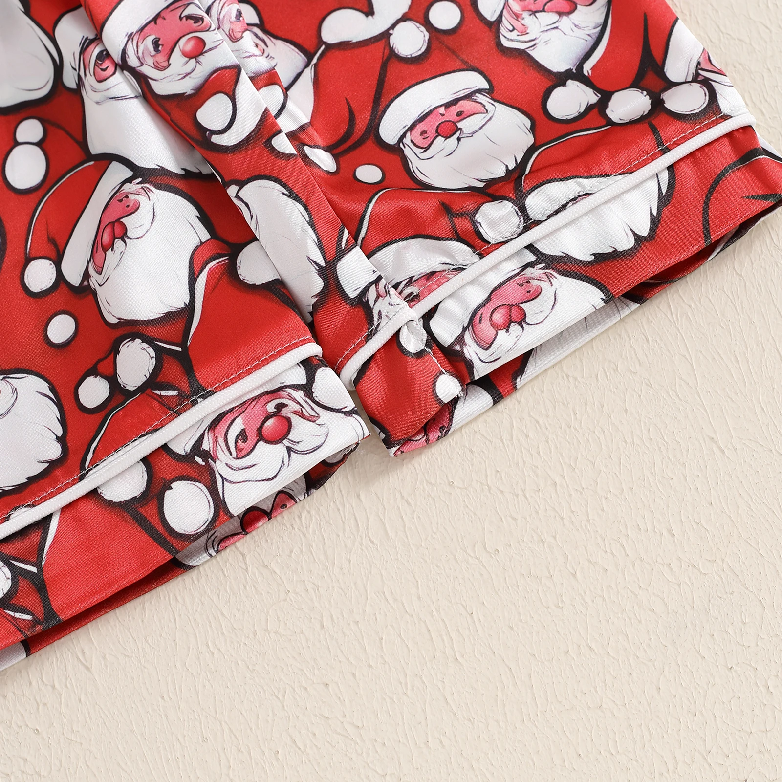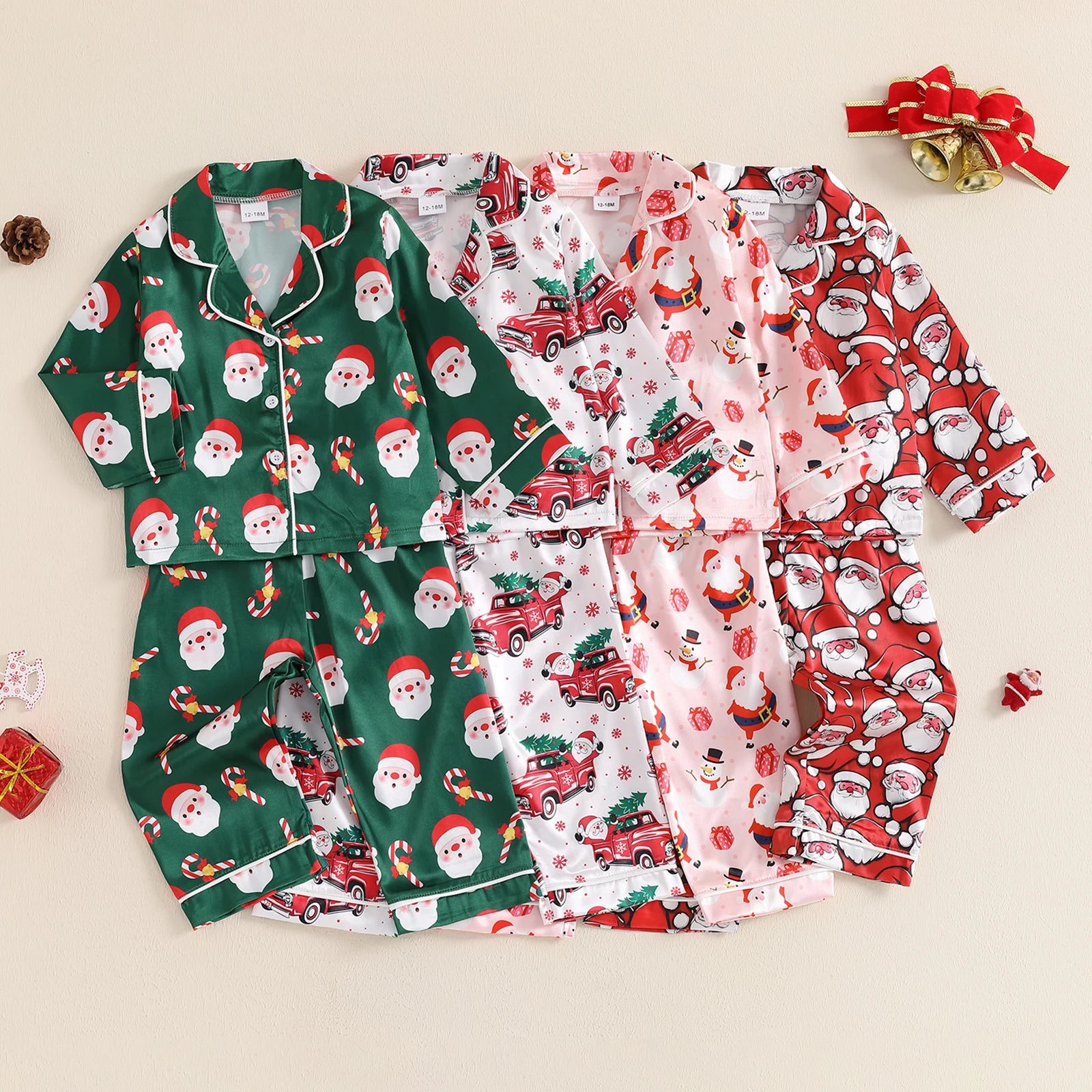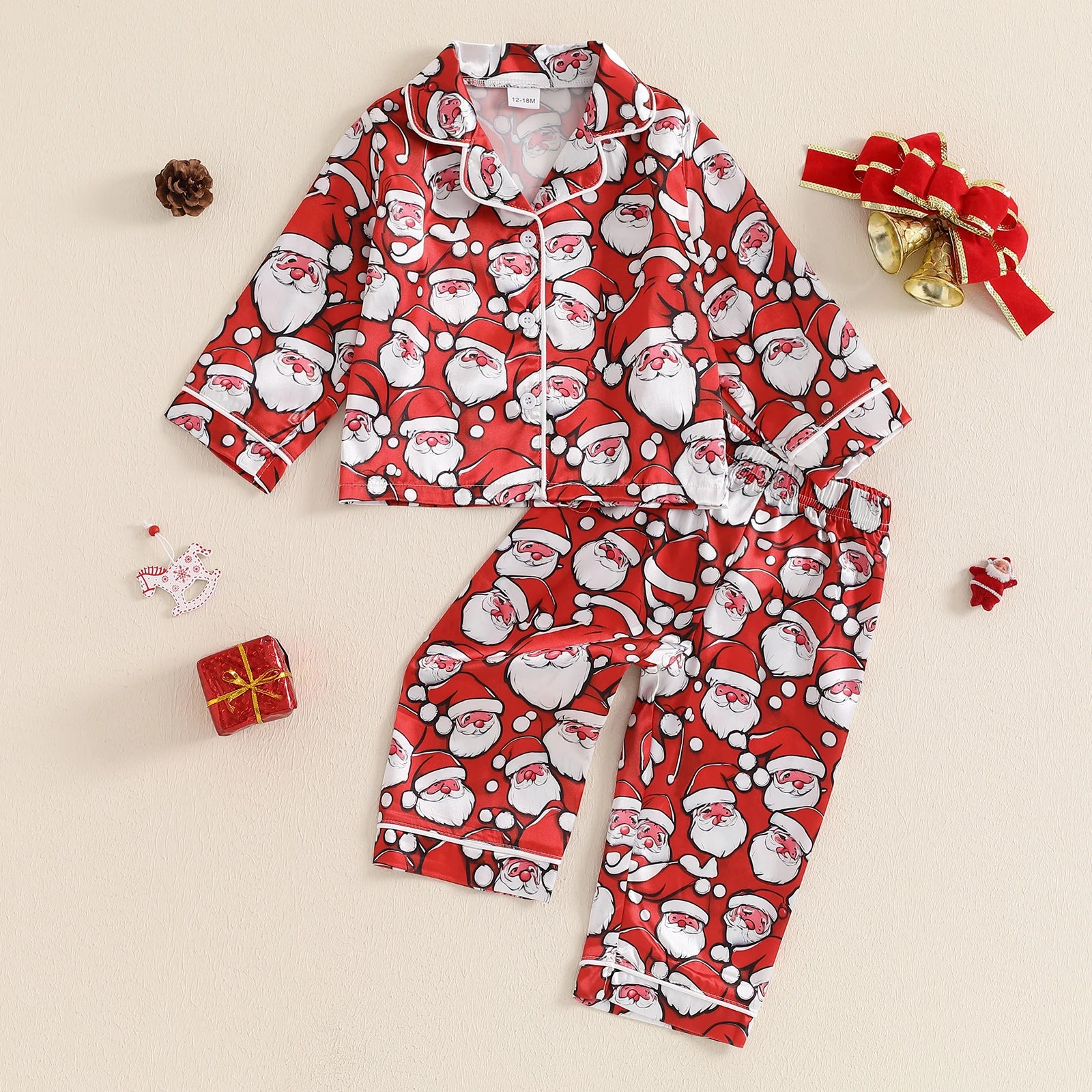 BeQeuewll Christmas Kids Girls Boys Pajamas Set Satin Santa Claus Button Children Sleepwear Long Sleeves Shirt Pants Loungewear