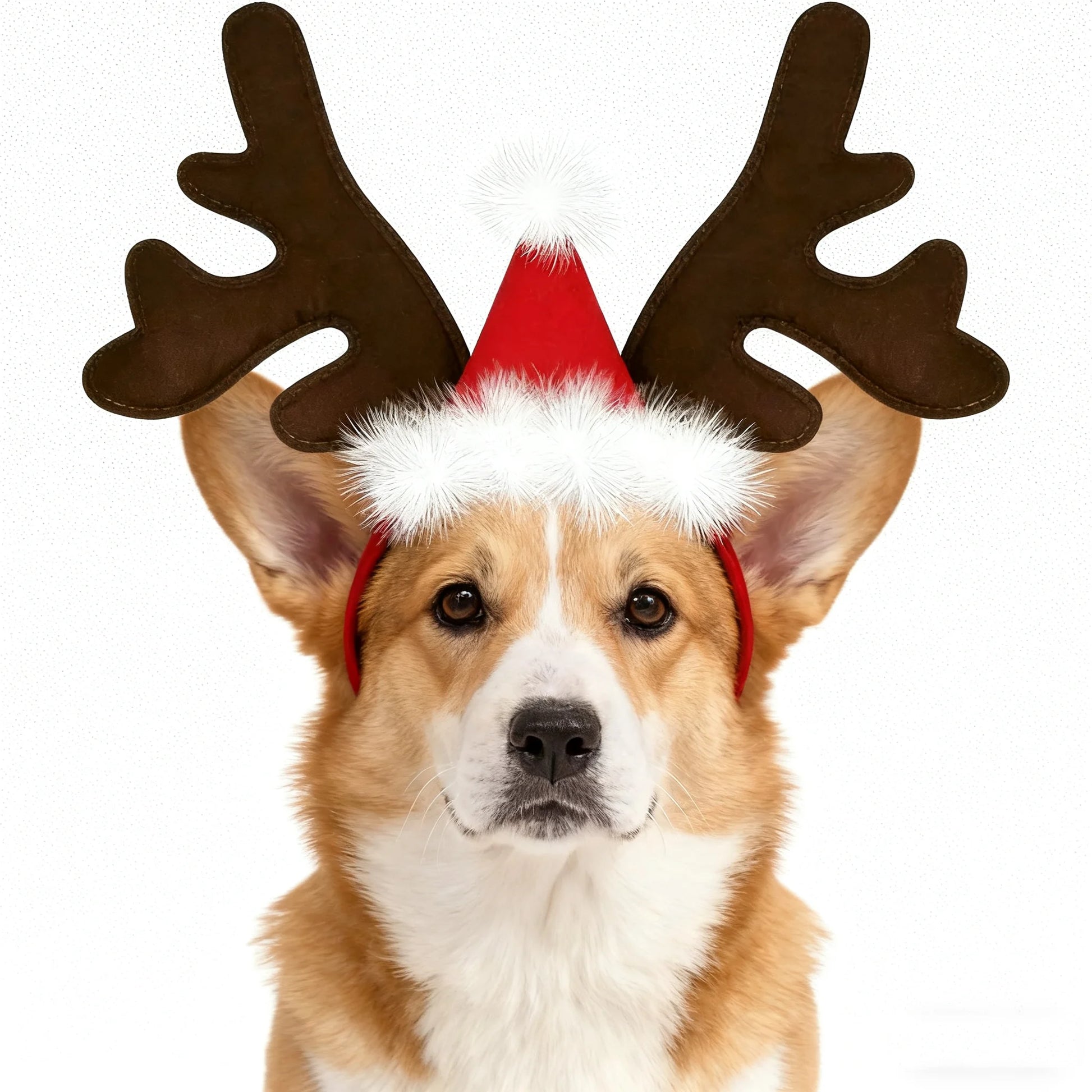 Christmas Decor Pet Headwear Party Cosplay Antlers Headbands Pet Essentials Xmas Hat Hair Hoops Dog Reindeer Hair Accessories