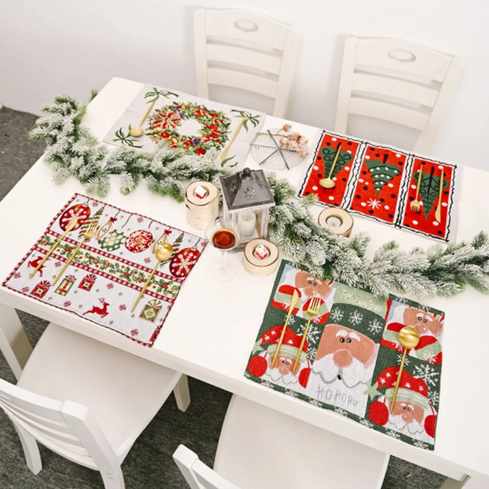 Christmas Decorations Knitted Knitted Tablecloth Santa Claus Small Tree Kitchen Placemats Cloth Placemats
