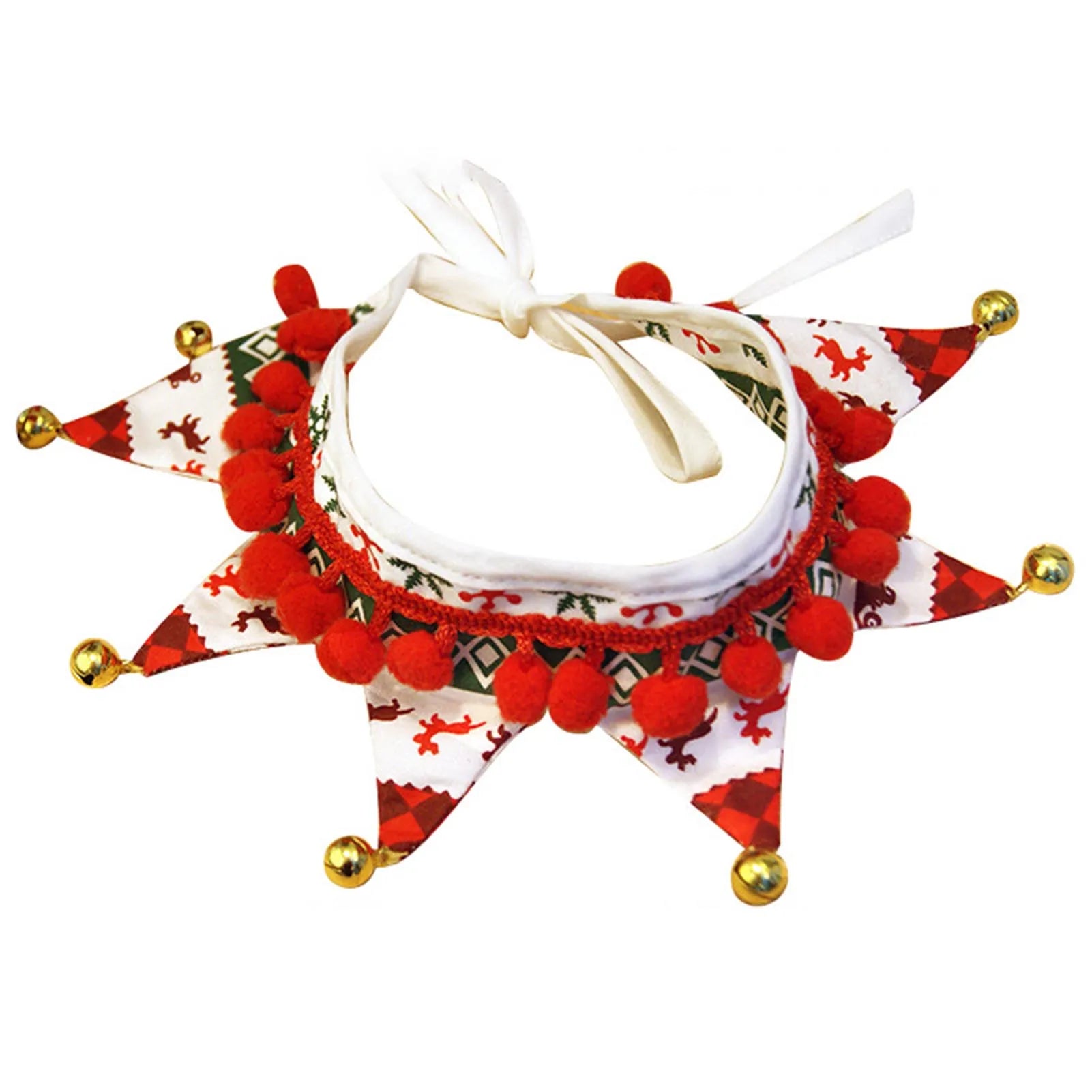Christmas Dog Scarf With Classic Festive Jingle Bell Dog Collar Suitable Pet Plush Triangular Towel For New Year Photo Shoots