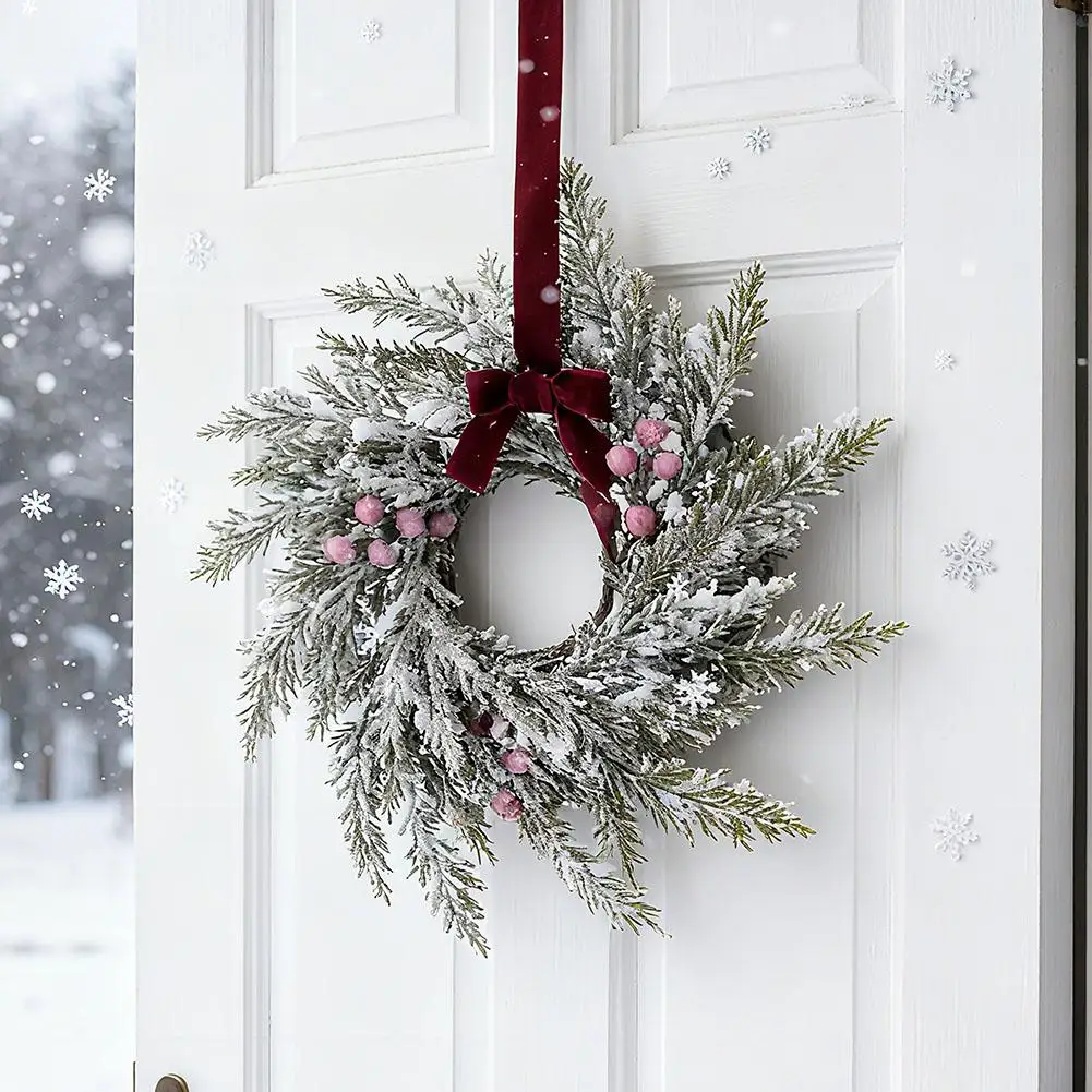 3. Constructed from high-quality plastic foliage and soft polyester ribbon, this wreath set maintains its shape and color over time, offering long-lasting use year after year without fraying or fading under normal conditions.