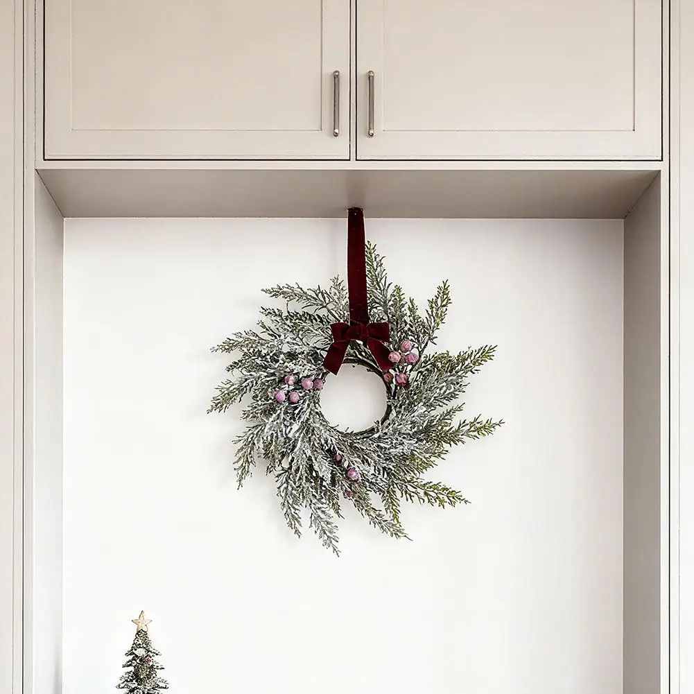 Christmas Kitchen Cabinet Wreaths With Bow Ribbon Hanging Cabinet Doors Wreaths Decor Kitchen Window Outdoor Indoor Holiday