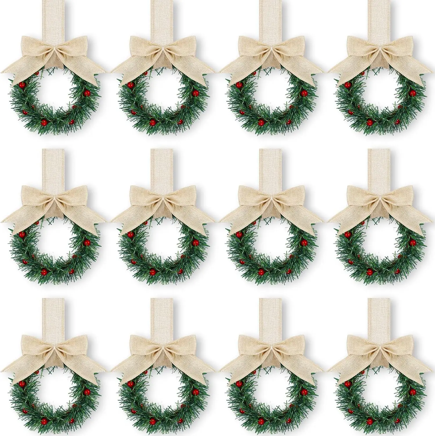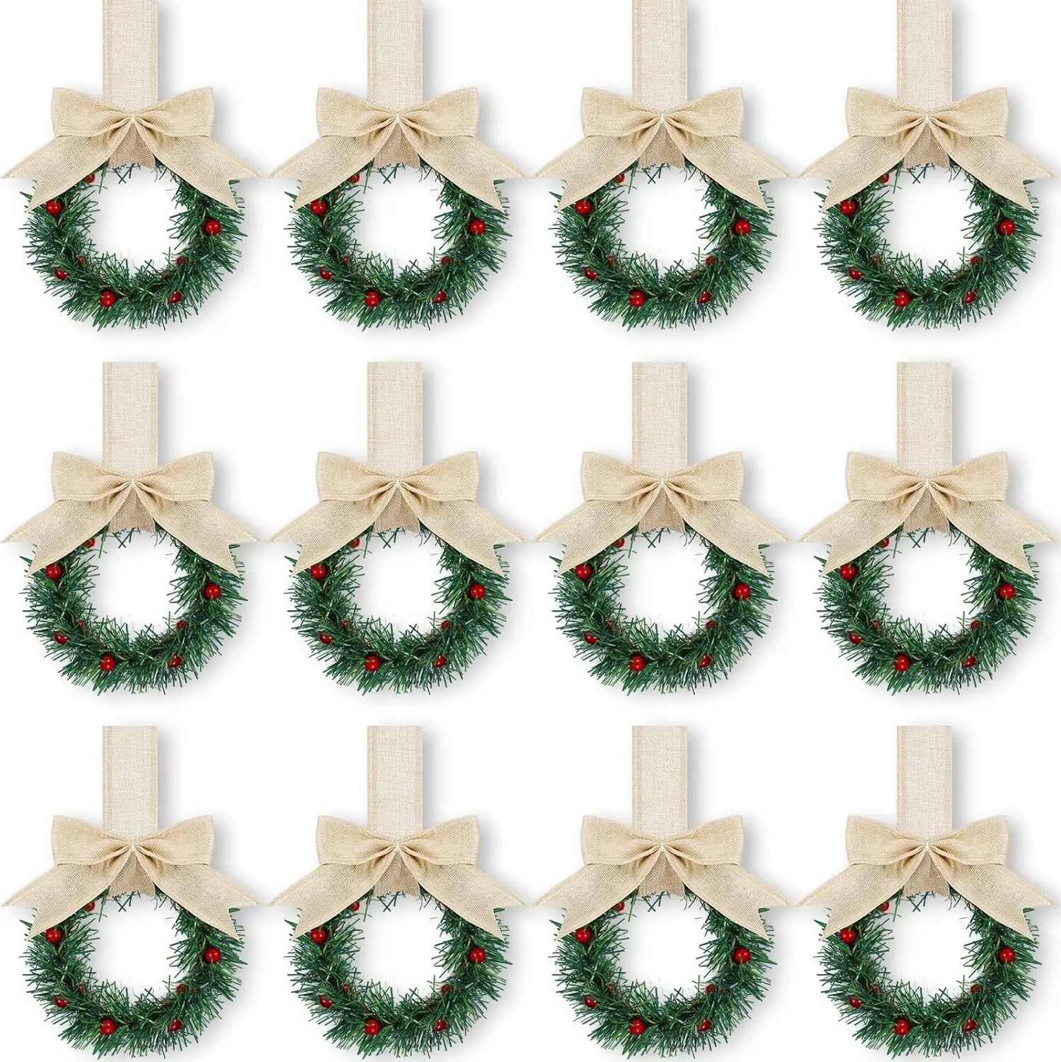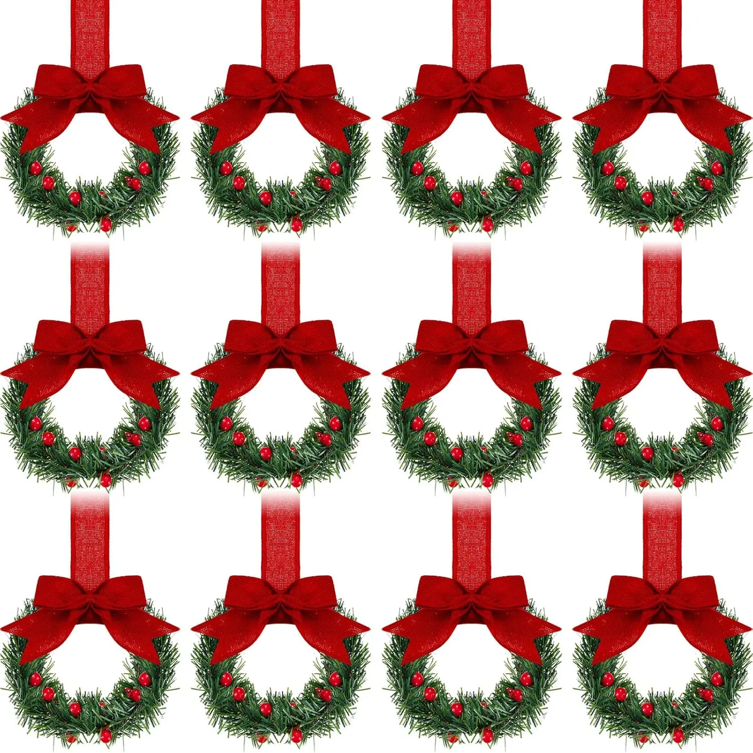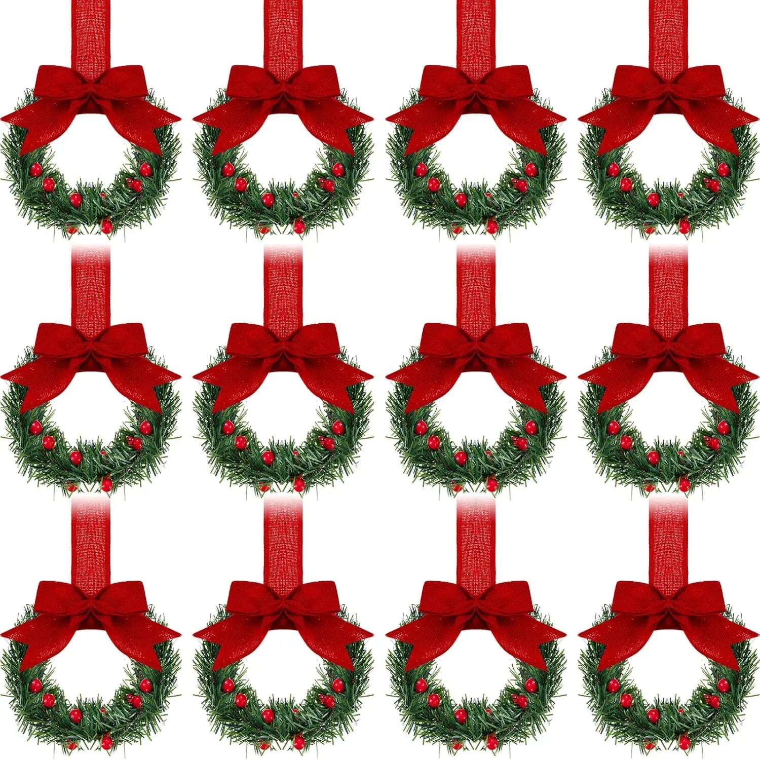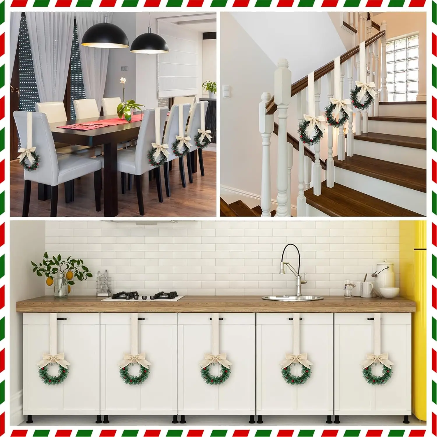 Christmas Kitchen Cabinet Wreaths with Ribbon 3.94 Inch Mini Christmas Wreath Small Kitchen Xmas Decor for Window Door(Red)