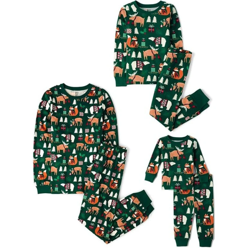 Christmas Loungewear Set - Long Sleeve & Long Pant Cute Cartoon Animal Print for Family & Couple Pajamas Loose & Casual Outfit