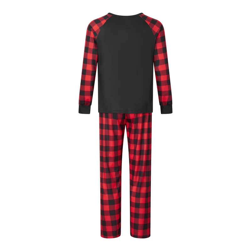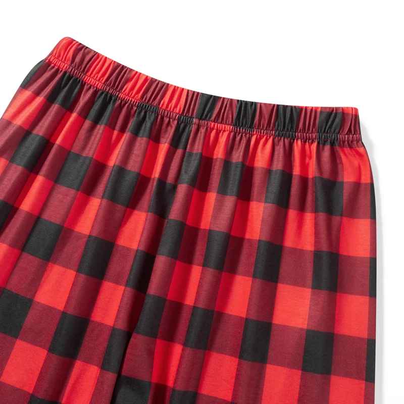 Christmas Family Pajamas – Long Sleeve Letter & Boots Top with Buffalo Plaid Pants