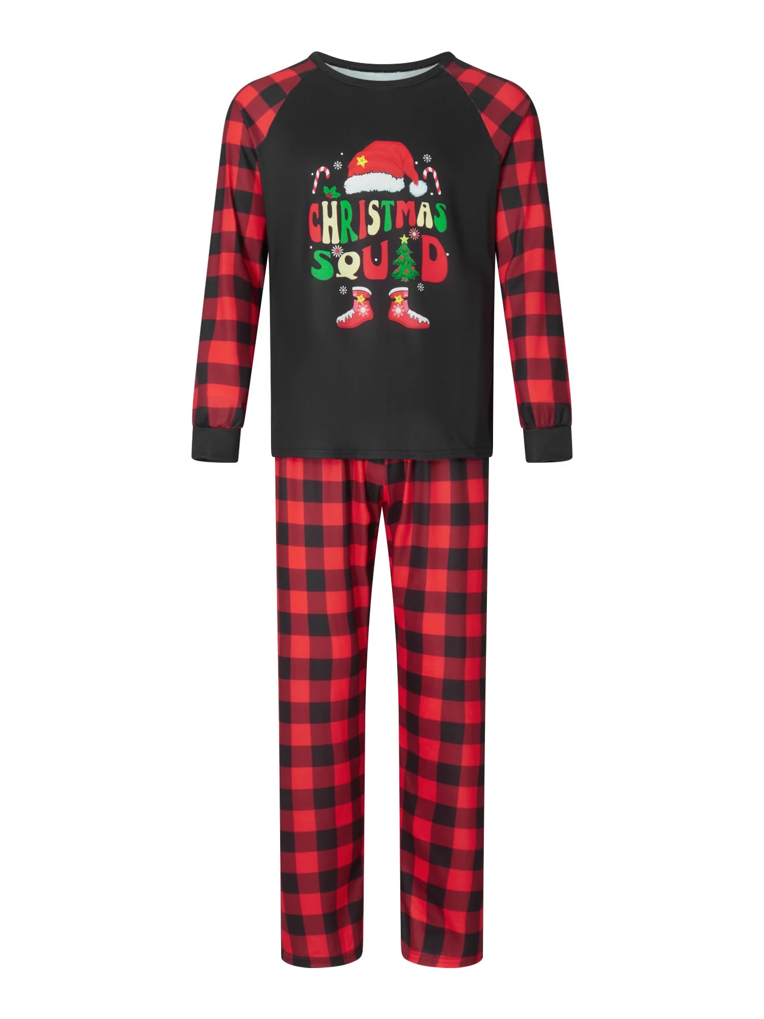 Celebrate the holidays in cozy style with these Christmas family matching pajamas, featuring a festive letter & boots print long-sleeve top paired with classic buffalo plaid pants. Designed for adults, kids, babies, and even pets, this winter sleepwear is perfect for family moments at home.