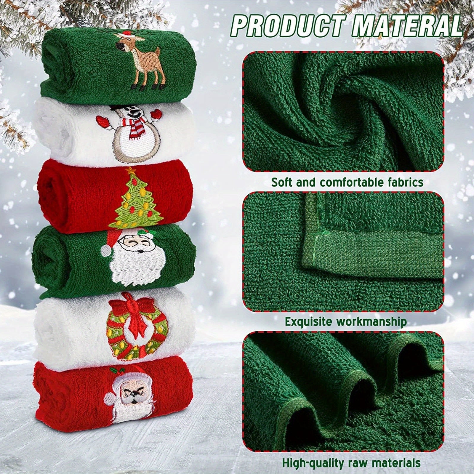 [Christmas] Set of Three Decorative Hand Towels for Christmas Featuring Embroidered Designs of Santa Claus, a Reindeer, a Snowman, And a Christmas Tree. Ideal for Use in The Kitchen Or Bathroom, These Towels Are Perfect for D