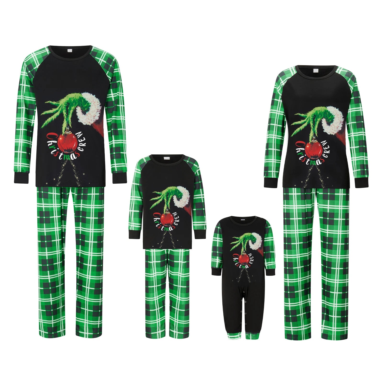 Family Matching Christmas Pajamas Set Christmas Ball & Plaid Print Holiday Pajamas Sleepwear Dad Mom Kids PJs