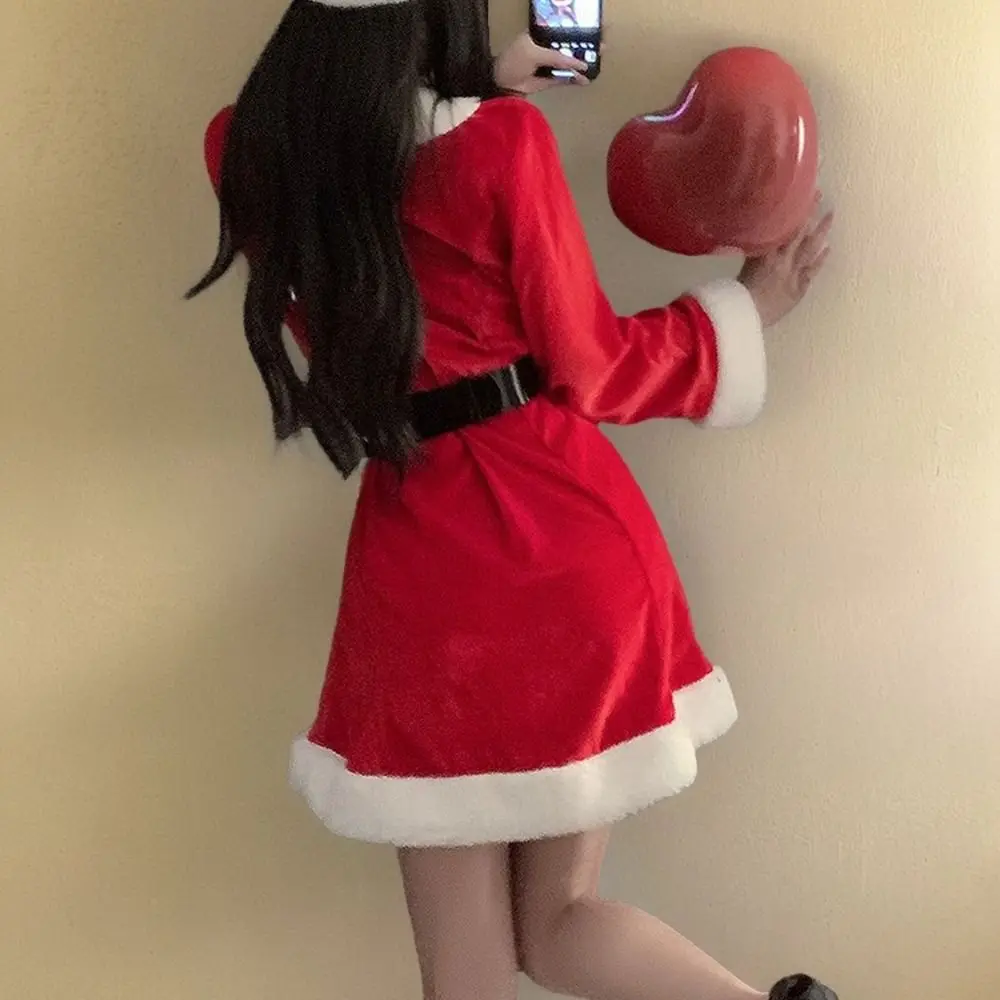 Comfortable Christmas Dress Women Pajamas New Year Red Dress Suit Sweet High Waist Long Sleeve Nightwear Girl