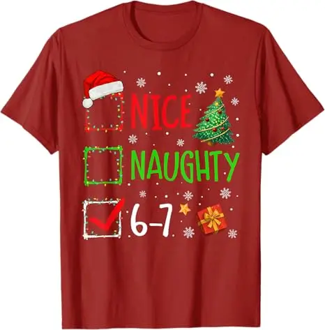 Bring meme humor to the holidays with this funny 6-7 Christmas design featuring “Nice Naughty 67.” Perfect for Gen Alpha fans who love brain rot jokes, gaming slang, and matching family PJs.