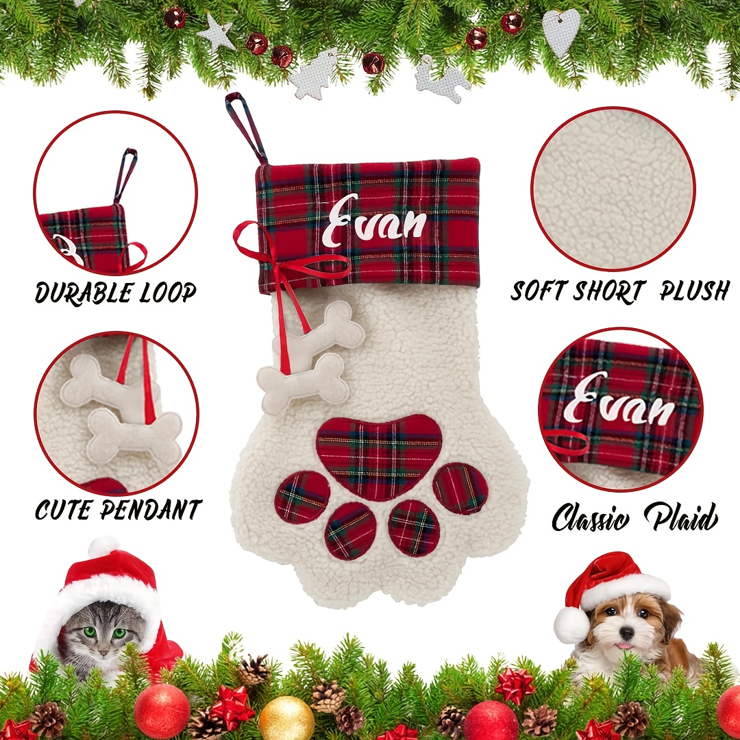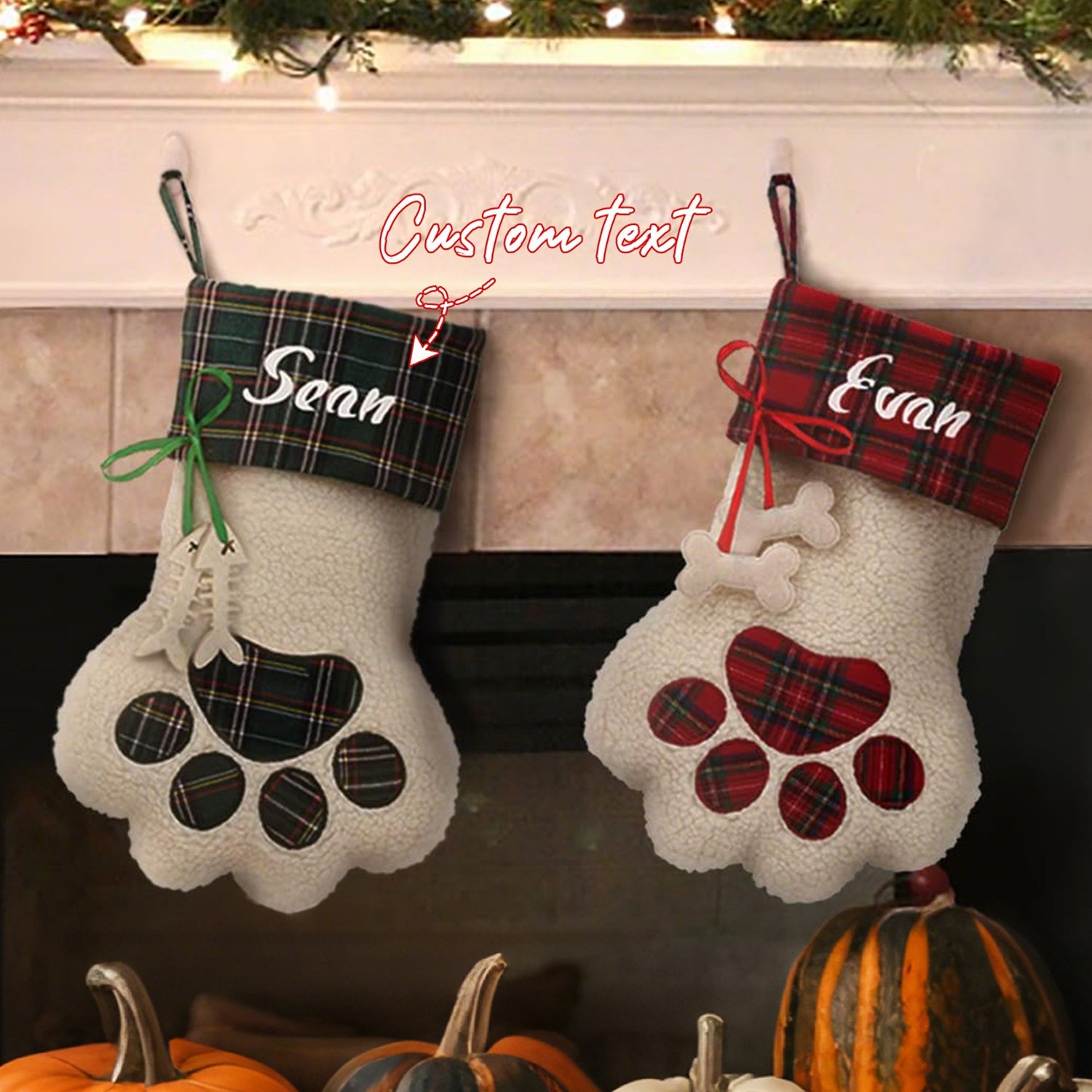 Personalized Christmas Stocking with Name – Santa & Paw Print Holiday Stocking